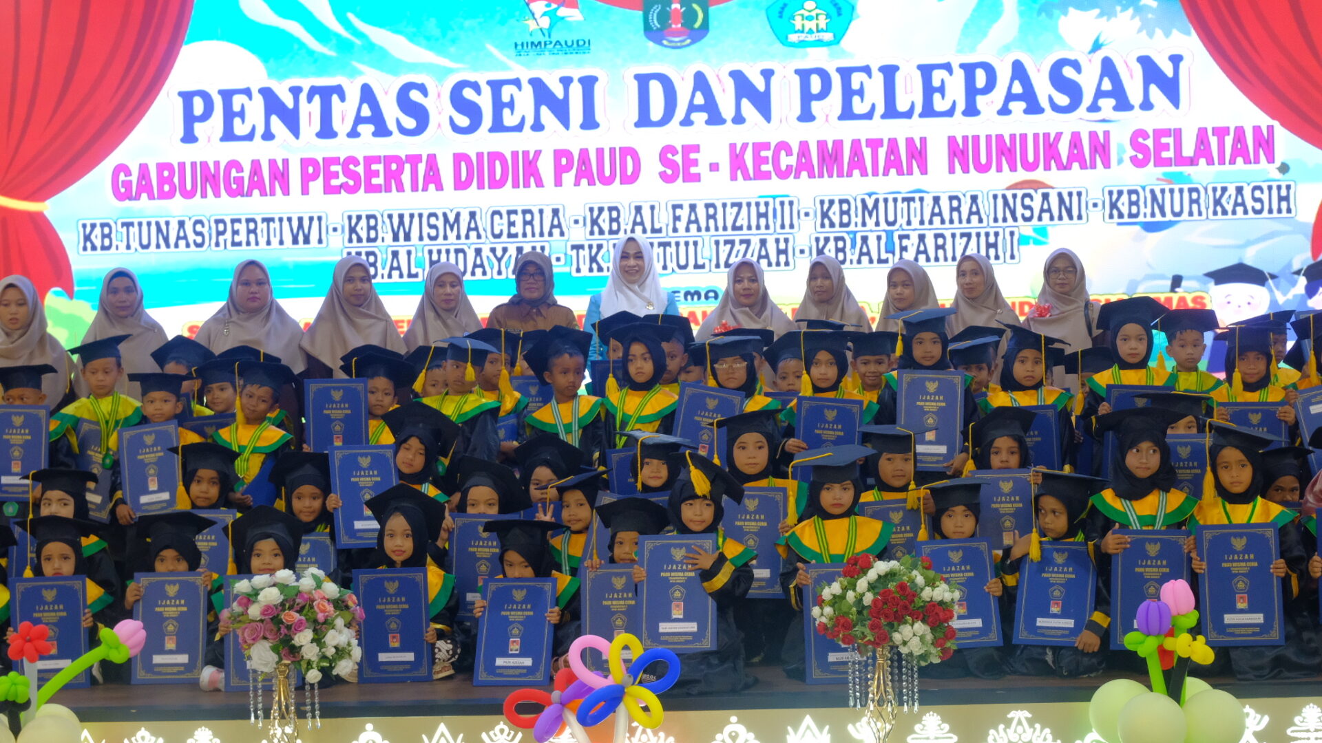 KaltaraA1.com, Nunukan- Himpunan Pendidik dan Tenaga Kependidikan Anak Usia Dini Indonesia (Himpaudi) Kabupaten Nunukan menggelar Pentas Seni dan Pelepasan Gabungan Peserta Didik Paud Se – Kecamatan Nunukan Selatan.